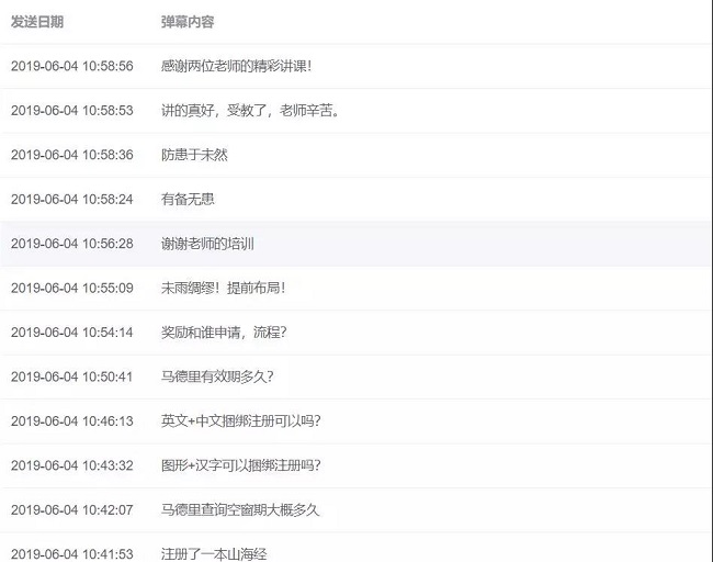 为更好的解决客户问题,了解客户需求,本次采用了抖音直播、弹幕互动的新颖方式让客户充分参与培训当中,本次会议相关抖音视频播放量达730万,点赞量达13万,现场弹幕参与互动达1500人次,共发送弹幕互动578条,以下为弹幕内容及抖音平台部分截图